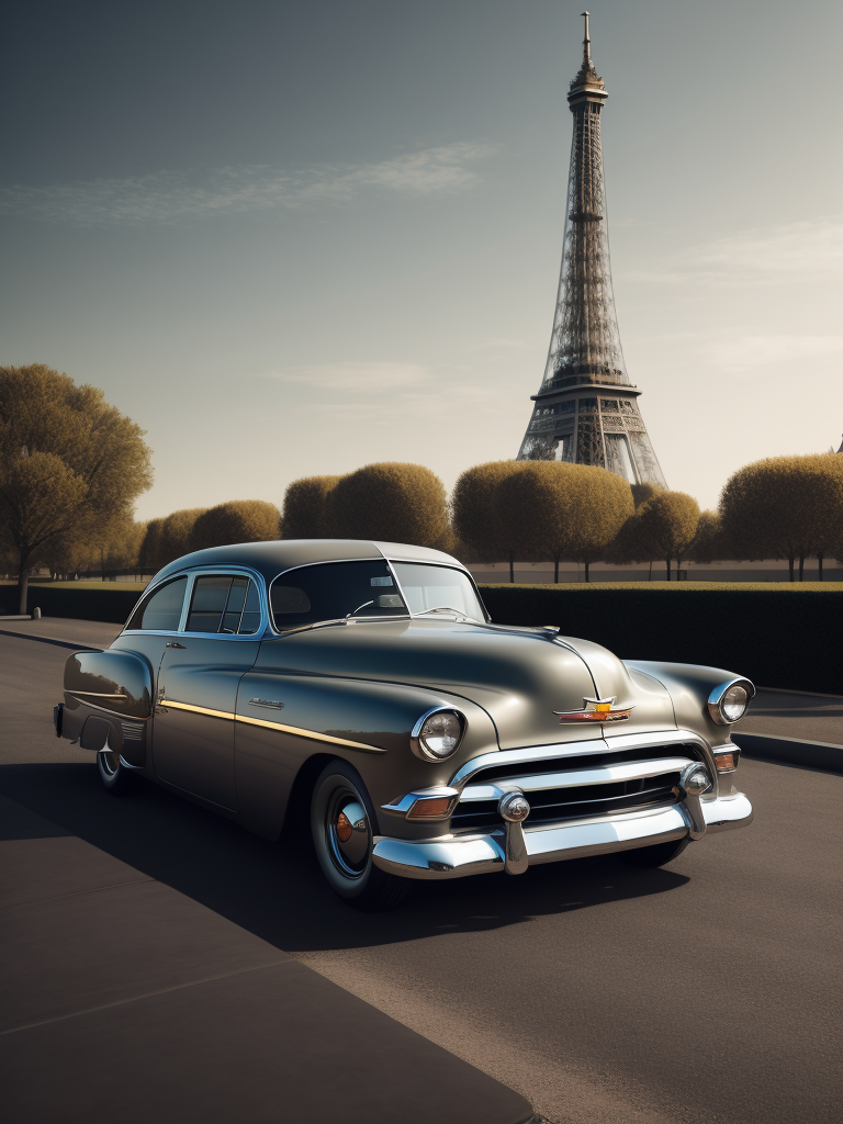 Premium Free ai Images | gray chevrolet with the eiffel tower in